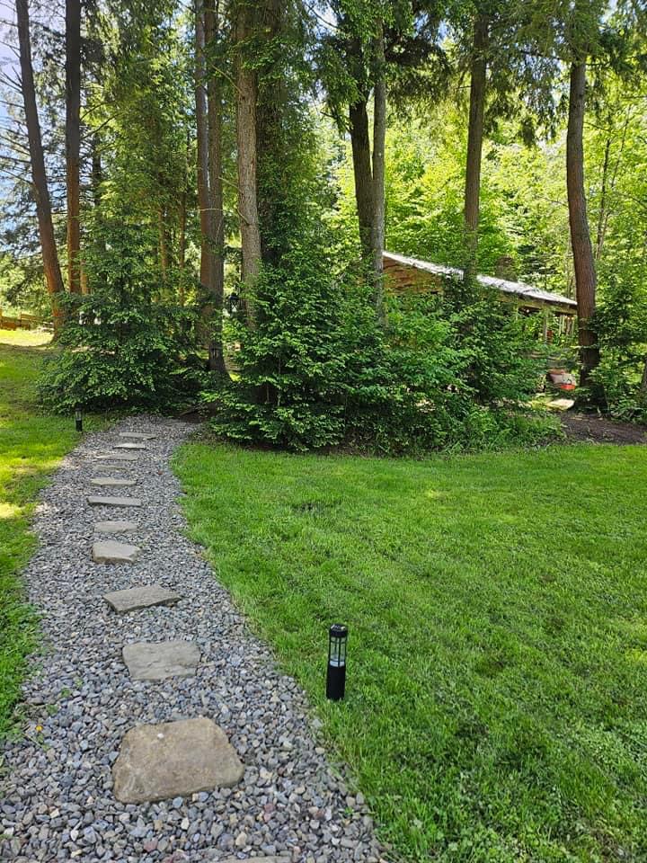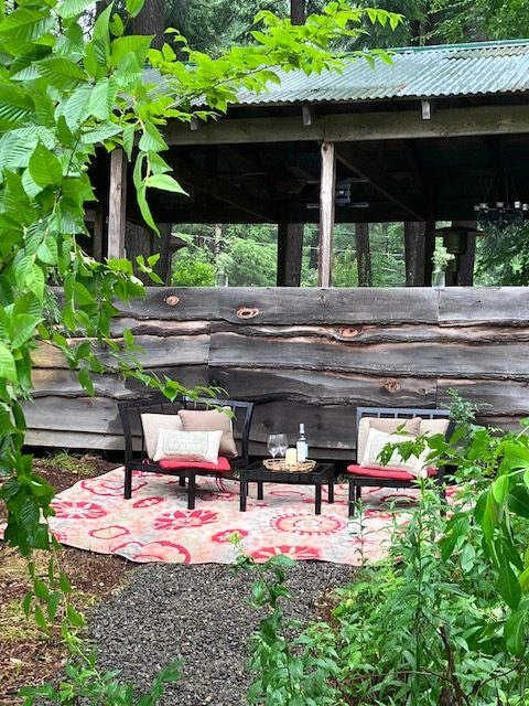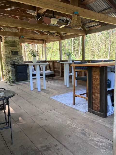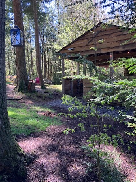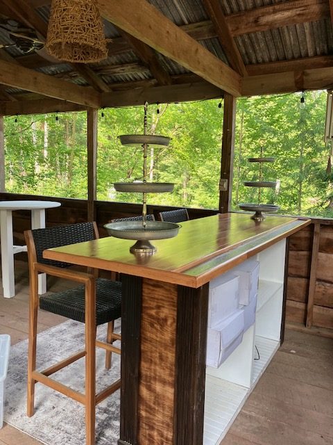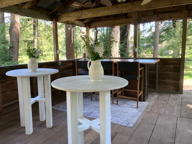 The Harvest Moon Gathering Pavilion is a wonderful outdoor event space with a view of the forest and pond.